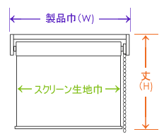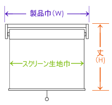 スクリーン生地巾は製品巾より約3cmほど短くなります。 |