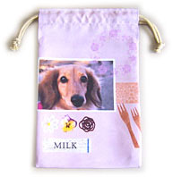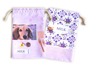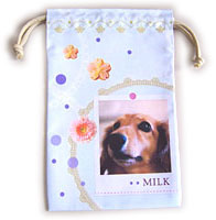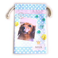 ワンちゃんの写真や家族の写真、イラストがポーチになります。オリジナルデザインの巾着袋を販売しています。